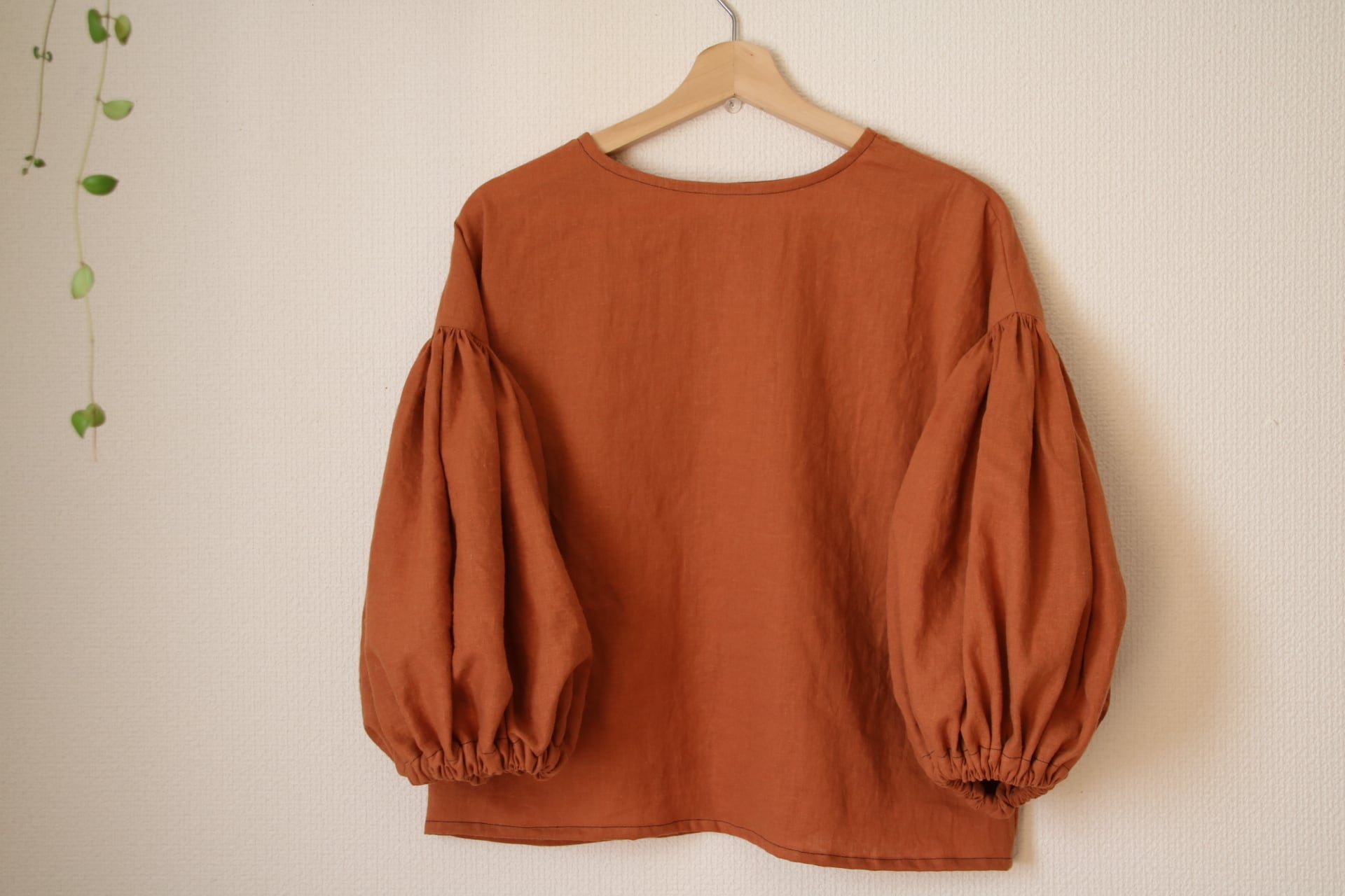 mama size ꫛꫀꪝぽわわん袖のハーフリネンブラウス テラコッタ